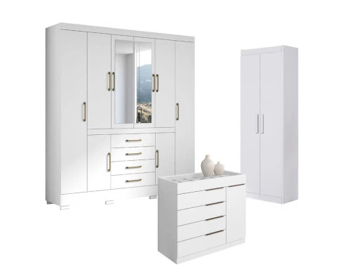 Guarda Roupa Casal Nápole 2045149 e Armário Multiuso 2000191 e Cômoda Sevilha Branco Brilho - Aramóveis