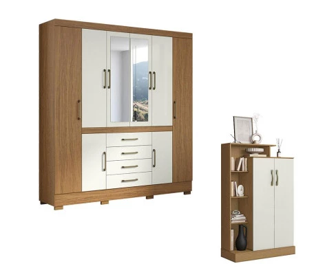 Guarda Roupa Casal Nápole 2045149 e Armário Multiuso Florença 2000199 Atacama Off White - Aramóveis