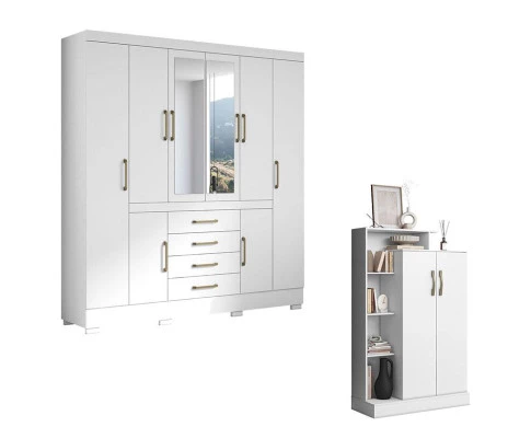 Buscando conjunto de guarda roupas e armário multiuso ideal para deixar o quarto mais moderno e prático? Com design simples e atemporal, apresentamos o Guarda Roupa Casal Nápole 2045149 e o Armário Multiuso Florença 2000199 Branco Brilho desenvolvidos pela Aramóveis, contam com amplo espaço interno para manter a organização das roupas, sapatos e outros pertences, confira e aproveite!