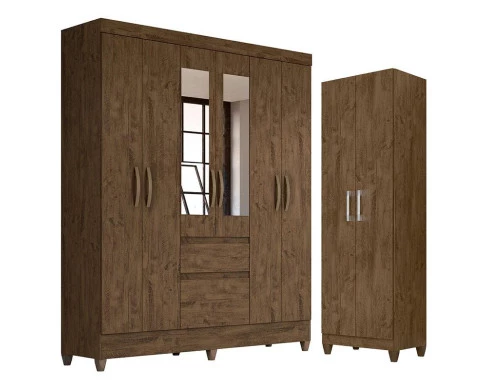 Transforme seu quarto com praticidade, estilo e o melhor custo beneficio do mercado. Apresentamos o Guarda Roupa Casal New Cuba com Espelho e Armário Multiuso New Íris fabricados pela Moval. Guarda Roupa com 06 portas sendo 02 com espelho e 02 gavetas com corrediças metálicas, puxadores na cor bronze, cabideiro para melhor organização interna e pés em PVC. O Armário Multiuso possui 02 portas, quatro prateleiras internas, cantoneira metálica para fixação na parede, puxadores na cor bronze, pés em PVC e um design moderno que combina com qualquer decoração. Fabricado com materiais de alta qualidade que garante resistência e durabilidade ao produto. Confira mais detalhes e aproveite!