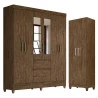 Guarda Roupa Casal New Cuba com Espelho e Armário Multiuso New Íris Castanho Wood - Moval