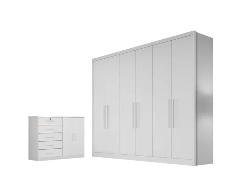Guarda Roupa Casal New Messina e Cômoda Seul Neve - Novo Horizonte