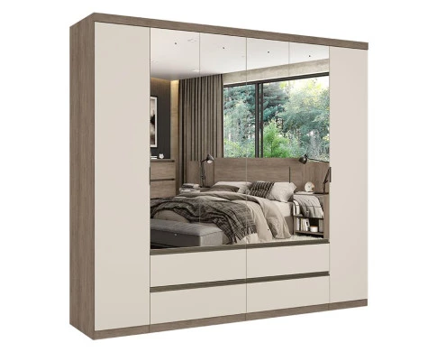 Guarda Roupa Casal Nobre 6 Portas Full Glass Rustic Off White Acetinado - THB
