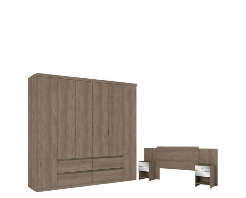 Guarda Roupa Casal Nobre 6 Portas Rustic Acetinado e Cabeceira com Mesas de Cabeceira Formosa Glass Rustic- THB