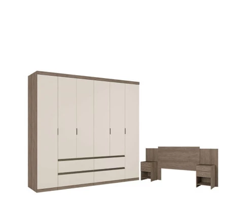Guarda Roupa Casal Nobre 6 Portas Rustic Off White e Cabeceira com Mesas de Cabeceira Formosa Rustic- THB