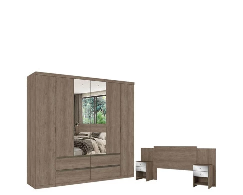Guarda Roupa Casal Nobre Glass 6 Portas Rustic Acetinado e Cabeceira com Mesas de Cabeceira Formosa Glass Rustic- THB