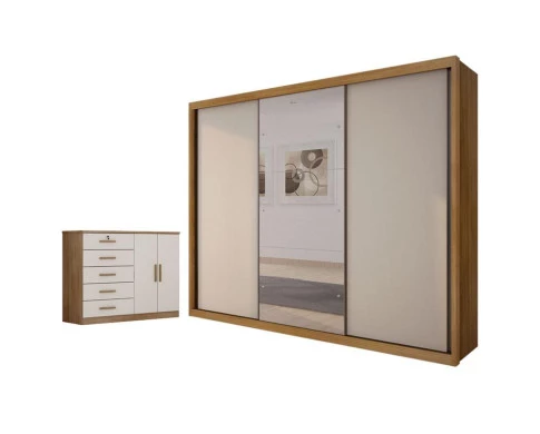 Guarda Roupa Casal Palazzo com Espelho e Cômoda Seul Cumaru 25 Fendi - Novo Horizonte