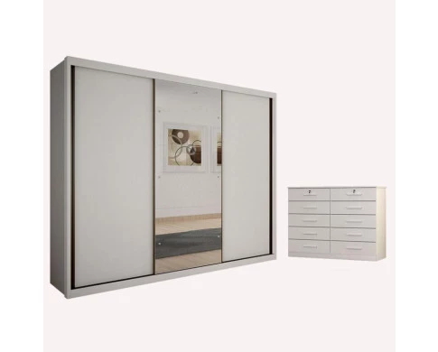 Esta precisando de guarda roupa e cômoda? Nós temos a opção certa para que seu quarto fique mais bonito e funcional. Guarda-roupa da linha Palazzo e Gaveteiro da linha Milão, fabricados com materiais de altíssima qualidade em MDP/MDF, com um lindo design moderno, o guarda roupa possui várias repartições, gavetas, prateleiras amplo espaço interno garantindo mais organização. O gaveteiro possui 10 gavetas equipadas com corrediças telescópicas garantindo suavidade para manusear. Deixe seu ambiente mais aconchegante, não perca tempo adquira já!