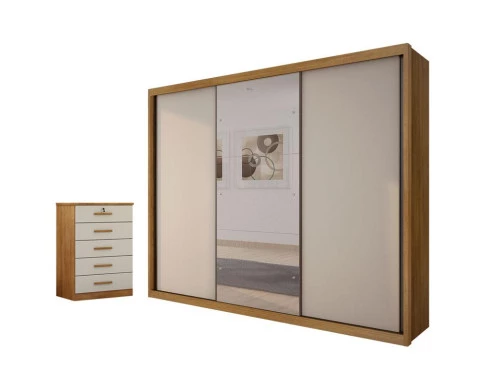 Guarda Roupa Casal Palazzo com Espelho e Gaveteiro Suiça Cumaru 25 Fendi - Novo Horizonte