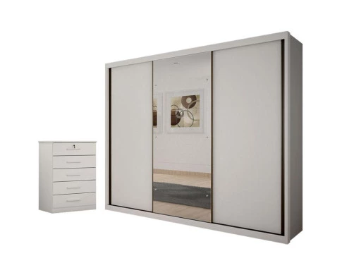 Guarda Roupa Casal Palazzo com Espelho e Gaveteiro Suiça Neve - Novo Horizonte