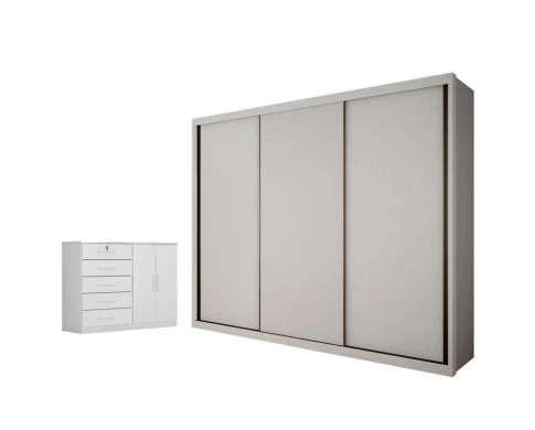 Guarda Roupa Casal Palazzo e Cômoda Seul Neve - Novo Horizonte