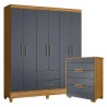 Guarda Roupa Casal Panamá e Cômoda Dhara Freijó Cinza- Moval