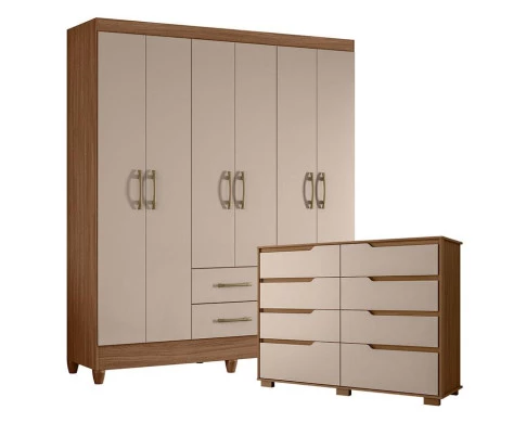 Guarda Roupa Casal Panamá e Cômoda Georgia Carvalho Fendi - Moval