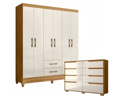 Organize seu quarto com elegância e o melhor custo beneficio do mercado. Apresentamos o Guarda Roupa Casal Panamá e Cômoda Georgia fabricados pela Moval. Guarda Roupa com 06 portas e 02 gavetas com corrediças metálicas, espaço para roupas longas, puxadores na cor bronze, cabideiro em madeira para melhor organização interna e pés em PVC. A cômoda possui 08 gavetas com corrediças telescópicas, puxadores usinados, pés em PVC e um design moderno que combina com qualquer decoração. Fabricado com materiais de alta qualidade que garante resistência e durabilidade ao produto. Confira mais detalhes e aproveite!