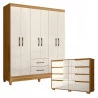 Guarda Roupa Casal Panamá e Cômoda Georgia Freijó Off White- Moval