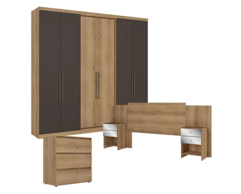 Conjunto para quarto de casal com Guarda-Roupa Passione Ultra 6 Portas na cor Capuccino/Cacau, acompanhado da Cômoda Gaveteiro Condessa e da Cabeceira Formosa Capuccino – THB. O guarda-roupa oferece excelente espaço interno, com prateleiras, cabideiros e gavetas que garantem organização completa. A cômoda Condessa possui gavetas amplas com ótimo espaço para roupas e acessórios. A cabeceira Formosa complementa o ambiente com um visual moderno e elegante, deixando o quarto harmonioso e aconchegante. Ideal para quem busca um conjunto bonito, funcional e bem combinado.