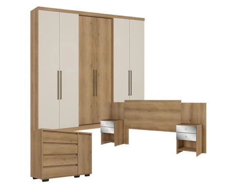 Conjunto para quarto de casal com Guarda-Roupa Passione Ultra 6 Portas na cor Capuccino/Off White, acompanhado da Cômoda com Porta Aurora e da Cabeceira Formosa Capuccino – THB. O guarda-roupa oferece excelente espaço interno com prateleiras, cabideiros e gavetas, garantindo organização prática e funcional. A cômoda complementa o conjunto com gavetas amplas e porta lateral para ainda mais armazenamento. A cabeceira Formosa traz um toque elegante e moderno, deixando o quarto harmonioso e aconchegante. Ideal para quem busca beleza, qualidade e praticidade em um único conjunto.