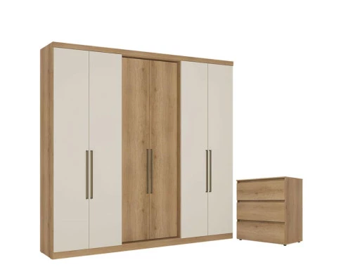 Guarda Roupa Casal Passione Ultra 6 Portas Capuccino Off White e Cômoda Gaveteiro Condessa Capuccino - THB