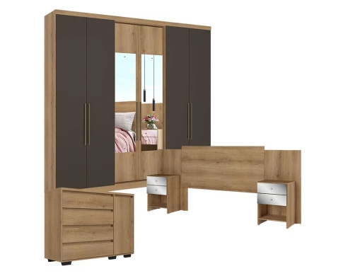 Conjunto para quarto de casal com Guarda-Roupa Passione Ultra Glass 6 Portas, Cômoda com Porta Aurora e Cabeceira Formosa Glass, todos na cor Capuccino/Cacau – THB. O guarda-roupa conta com portas com detalhe em vidro, amplo espaço interno, prateleiras, cabideiros e gavetas que facilitam a organização. A cômoda oferece gavetas espaçosas e porta lateral, perfeita para roupas e acessórios. A cabeceira Formosa Glass completa o ambiente com um visual moderno e elegante. Ideal para quem busca um conjunto harmonioso, funcional e sofisticado para o quarto.
