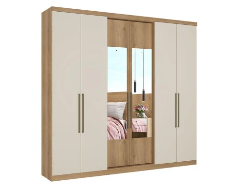 Guarda Roupa Casal Passione Ultra Glass 6 Portas Capuccino Off White Acetinado - THB