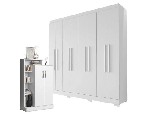 Guarda Roupa Casal Porto 8 Portas 4 Gavetas e Armário Multiuso Florença Branco Brilho – Aramóveis