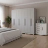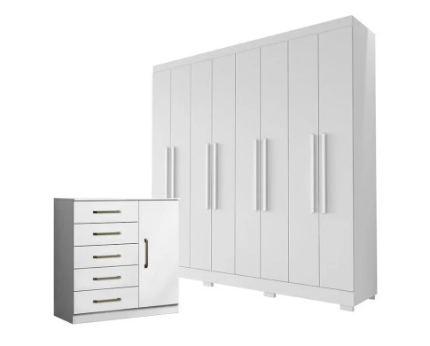 Guarda Roupa Casal Porto 8 Portas 4 Gavetas e Cômoda Milão Branco Brilho - Aramóveis