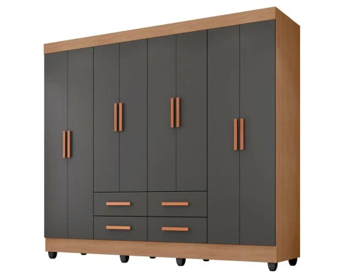 Guarda Roupa Casal Porto 8 Portas Nature Cinza – Móveis Leão