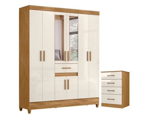 Guarda Roupa Casal Portugal com Espelho e Cômoda MS913 Freijó Off White – Moval