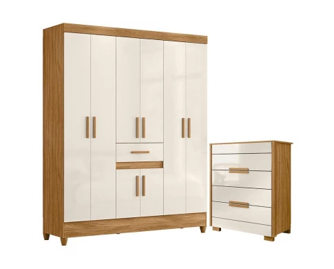 Guarda Roupa Casal Portugal e Cômoda Dhara Freijó Off White – Moval