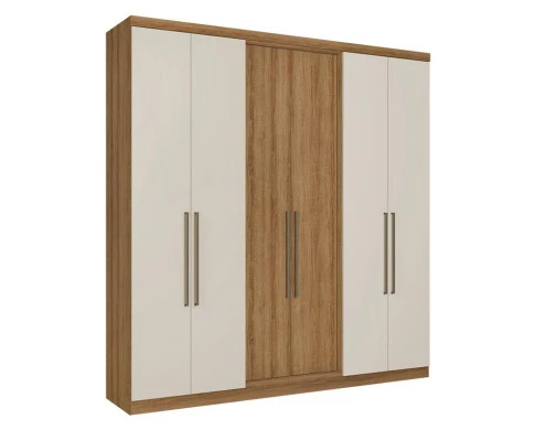 Guarda Roupa Casal Presence 6 Portas Almendra Off White Acetinado - THB