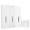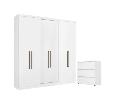 Guarda Roupa Casal Presence 6 Portas Branco Acetinado e Cômoda Gaveteiro Condessa Branco - THB