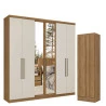 Guarda Roupa Casal Presence Full Glass 6 Portas Almendra Off White Acetinado e Multiuso Space Almendra - THB