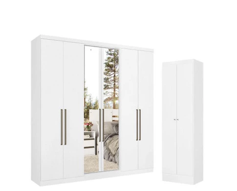 Guarda Roupa Casal Presence Full Glass 6 Portas Branco Acetinado e Multiuso Space Branco - THB
