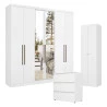 Guarda Roupa Casal Presence Full Glass 6 Portas com Cômoda Gaveteiro Condessa e Armário Multiuso 2 Portas Space Branco Acetinado - THB