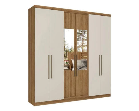 Guarda Roupa Casal Presence Glass 6 Portas Almendra Off White Acetinado - THB