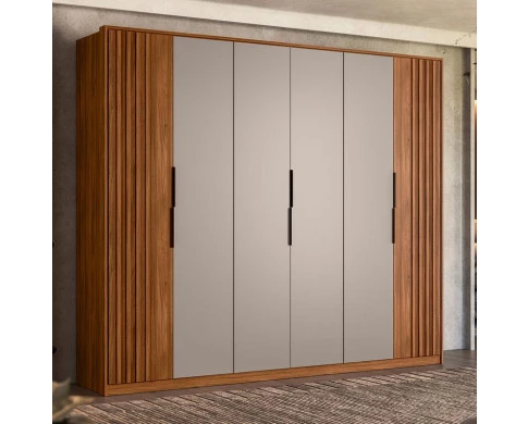 Guarda Roupa Casal Ripado Atrice Ambiente 6 Portas Nogueira Nude Prime TX Demóbile – Demartêz