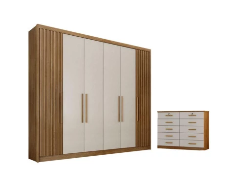 Guarda Roupa Casal Ripado Bolonha e Gaveteiro Milão com Chave Cumaru 25 Fendi - Novo Horizonte