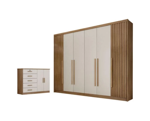 Guarda Roupa Casal Ripado Bragança e Cômoda Seul Cumaru 25 Fendi - Novo Horizonte