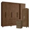 Guarda Roupa Casal San Lorenzo com Cômoda MS913 e Armário Multiuso New Íris Castanho Wood – Moval
