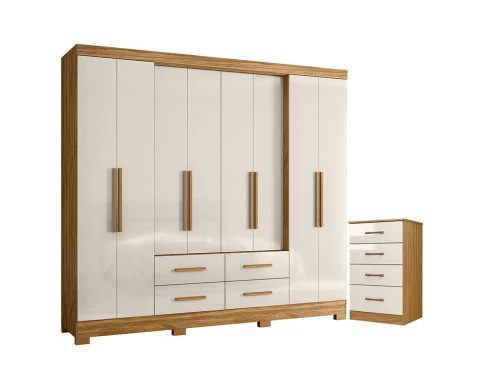 Organize seu quarto com elegância e o melhor custo benefício do mercado. Apresentamos o Guarda Roupa Casal San Lorenzo e Cômoda MS913 fabricados pela Moval. Guarda Roupa com 08 portas, portas laterais avançadas, 04 gavetas com corrediças telescópicas, puxadores na cor bronze, cabideiro e calceiros em alumínio para melhor organização interna e pés em PVC. A cômoda possui 04 gavetas com corrediças metálicas, sendo a última gaveta maior, puxadores em MDF e um design moderno que combina com qualquer decoração. Fabricado com materiais de alta qualidade que garante resistência e durabilidade ao produto. Confira mais detalhes e aproveite!
