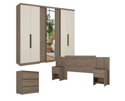 Guarda Roupa Casal Selecto 7 Portas Glass Rustic Off White com Cômoda Gaveteiro Condessa e Cabeceira Formosa Rustic - THB