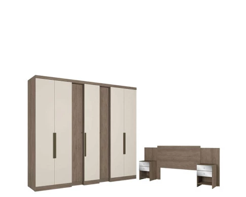 Guarda Roupa Casal Selecto 7 Portas Rustic Off White Acetinado e Cabeceira com Mesas de Cabeceira Formosa Glass Rustic -THB