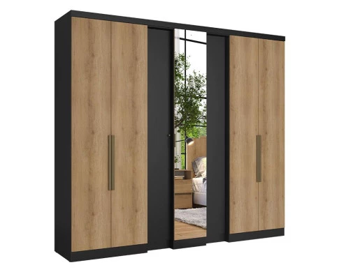 Guarda Roupa Casal Selecto Glass 7 Portas Preto Capucino Acetinado - THB