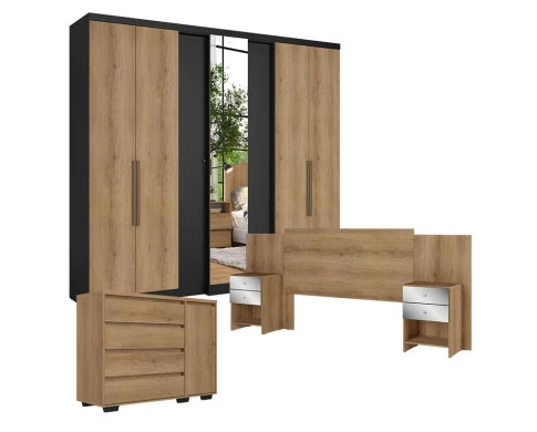 Guarda Roupa Casal Selecto Glass 7 Portas Preto Capuccino com Cômoda com Porta Aurora e Cabeceira Formosa Glass Capuccino - THB