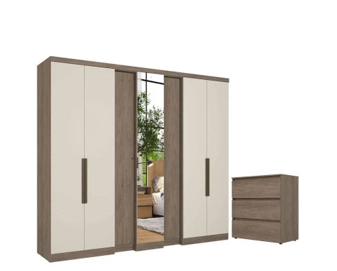 Guarda Roupa Casal Selecto 7 Portas Rustic Off White e Cômoda Gaveteiro Condessa Rustic - THB