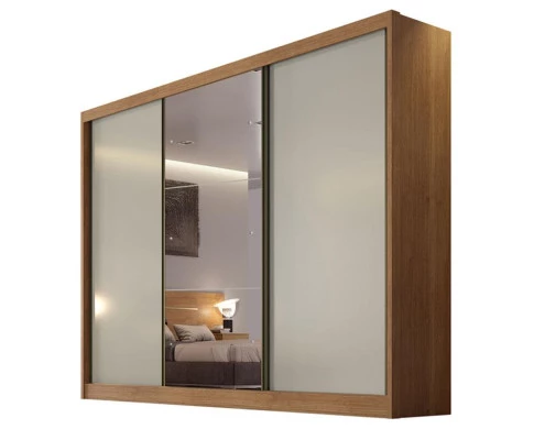 Guarda Roupa Casal Sonetto 3 Portas 4 Gavetas Cumaru 25 Fendi com Espelho – Novo Horizonte