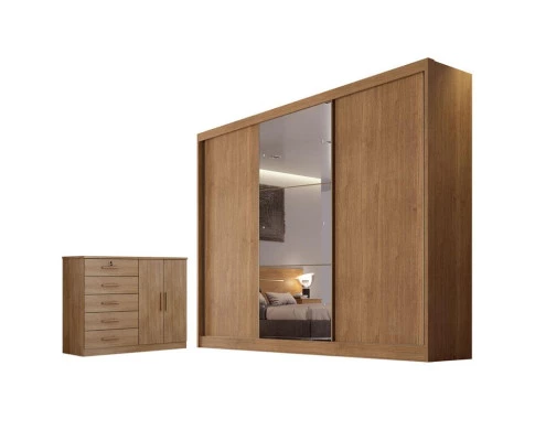 Guarda Roupa Casal Sonetto com Espelho e Cômoda Seul Cumaru 23 - Novo Horizonte