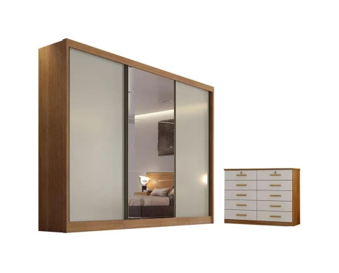 Guarda Roupa Casal Sonetto com Espelho e Gaveteiro Milão com Chave Cumaru 25 Fendi - Novo Horizonte