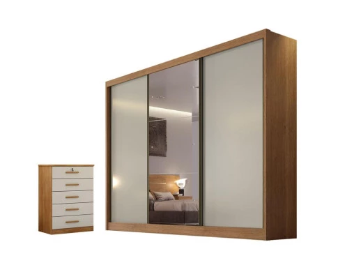 Guarda Roupa Casal Sonetto com Espelho e Gaveteiro Suiça Cumaru 25 Fendi - Novo Horizonte