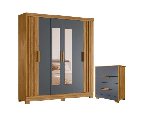 Guarda Roupa Casal Valença com Espelho e Cômoda Dhara Freijó Cinza – Moval